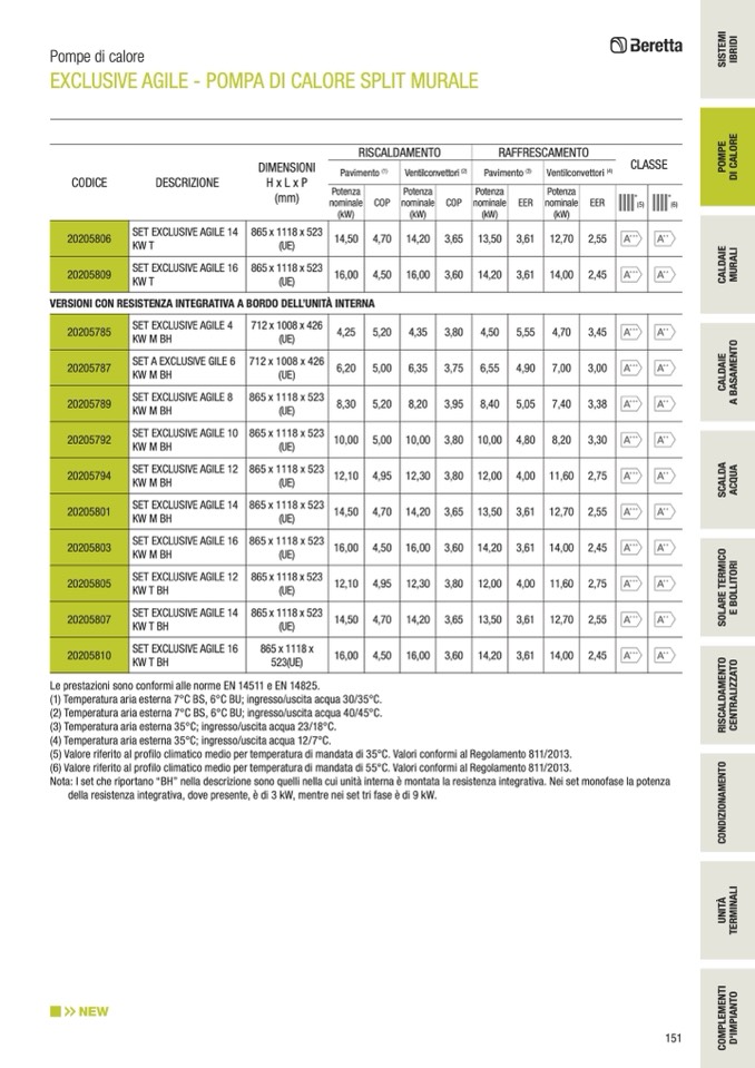 (5) Valore riferito al profilo climatico medio per temperatura di mandata di 35°C. Valori conformi al Regolamento 811/2013.