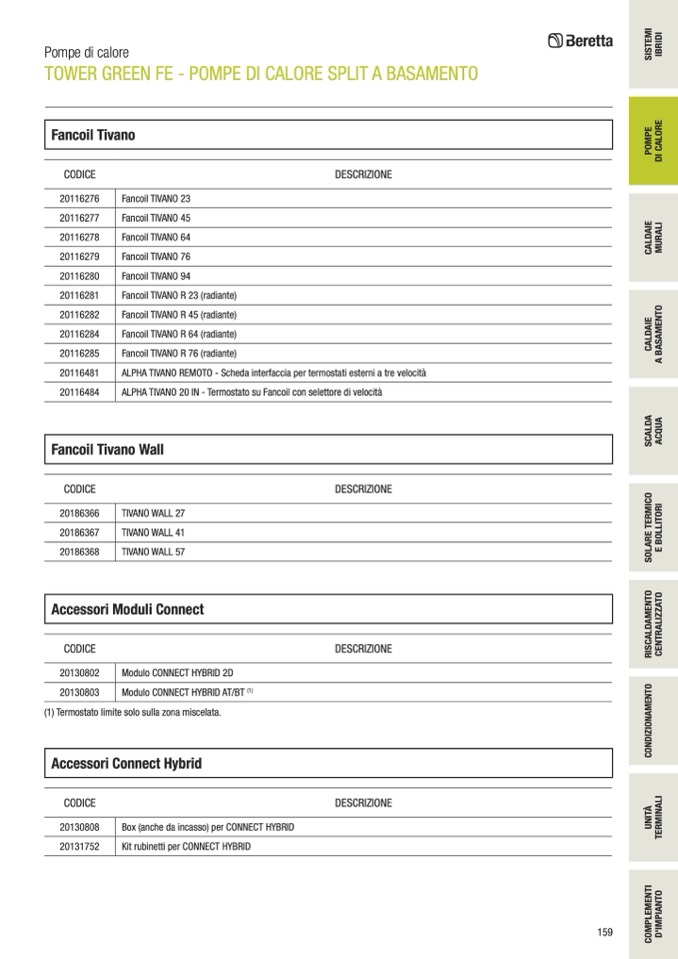 (1) Termostato limite solo sulla zona miscelata.