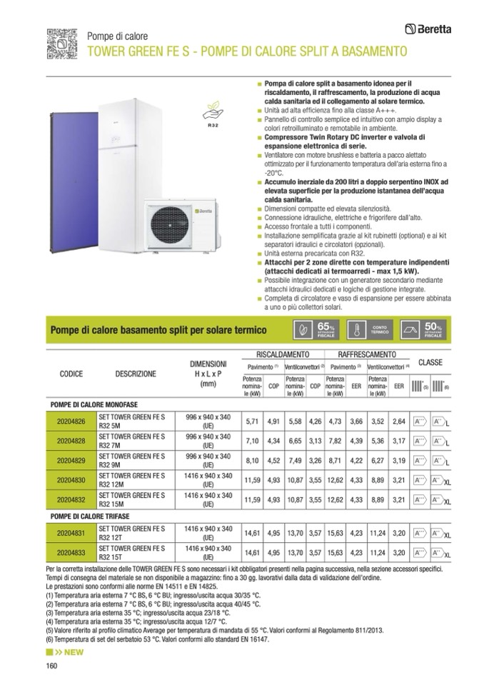 (5) Valore riferito al profilo climatico Average per temperatura di mandata di 55 °C. Valori conformi al Regolamento 811/2013.