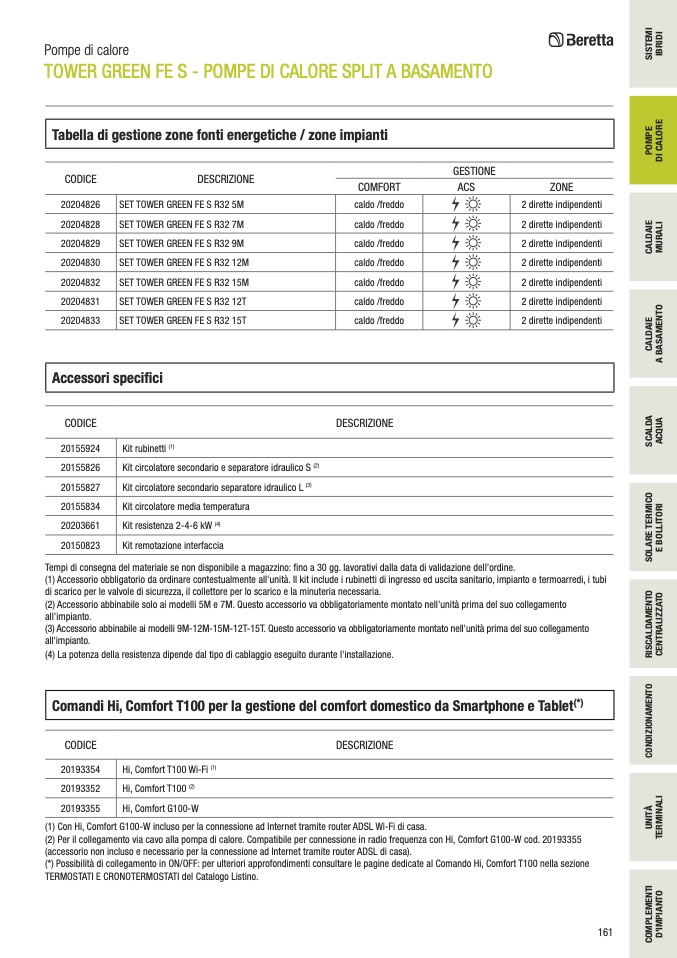 (2) Per il collegamento via cavo alla pompa di calore. Compatibile per connessione in radio frequenza con Hi, Comfort G100-W cod. 20193355