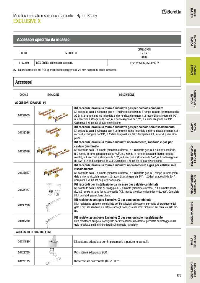 ACS), n.2 rampe in rame (mandata e ritorno riscaldamento), n.2 raccordi a stringere da 1/2”,
