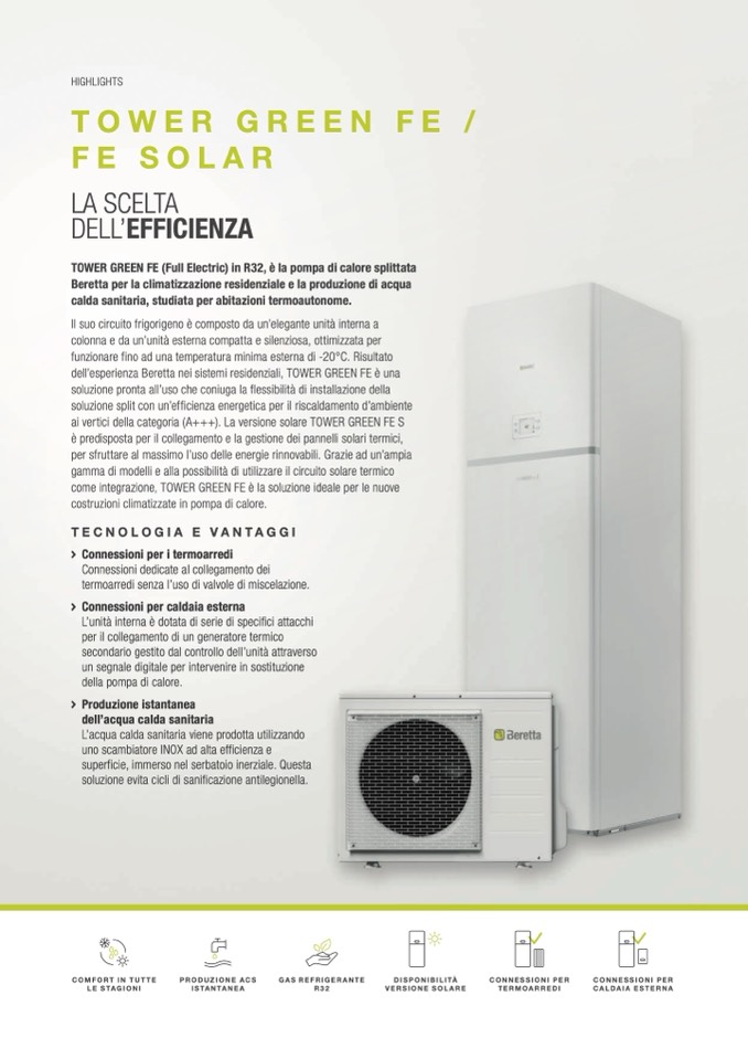 TOWER GREEN FE (Full Electric) in R32, è la pompa di calore splittata