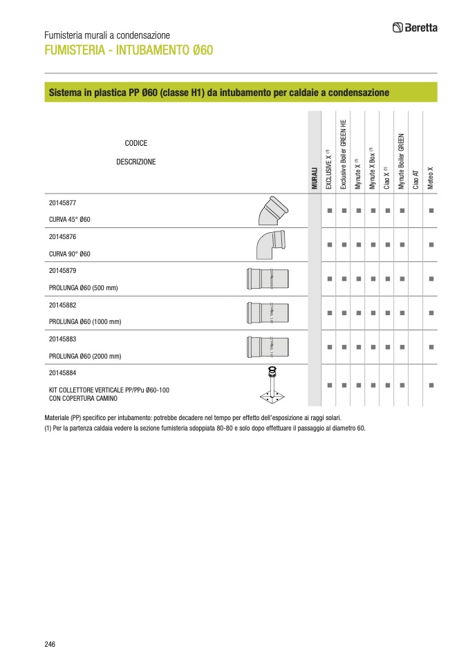 (1) Per la partenza caldaia vedere la sezione fumisteria sdoppiata 80-80 e solo dopo effettuare il passaggio al diametro 60.