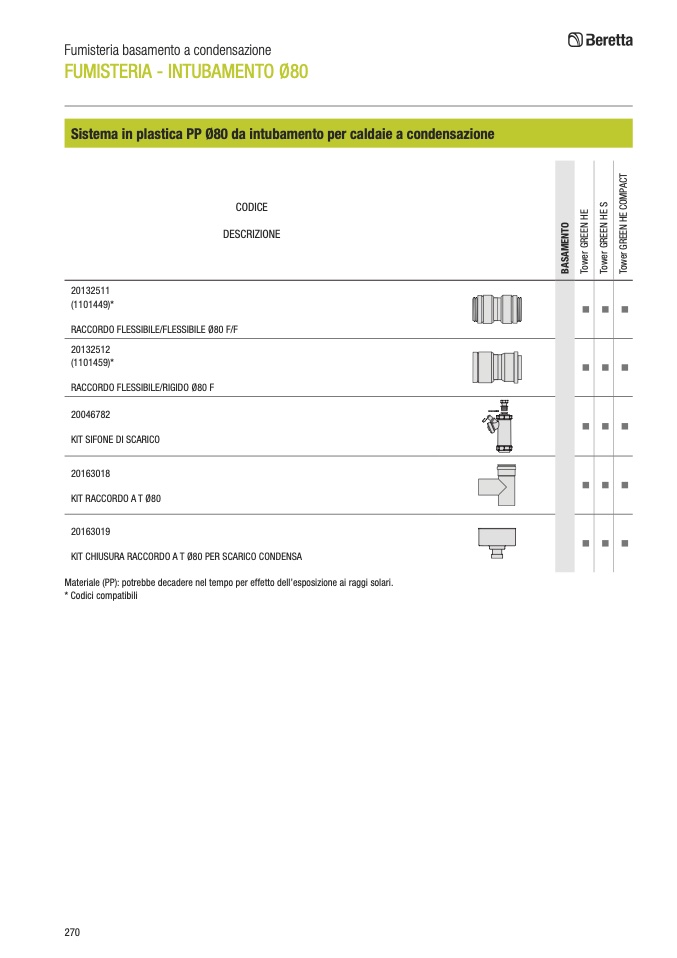 Materiale (PP): potrebbe decadere nel tempo per effetto dell’esposizione ai raggi solari.