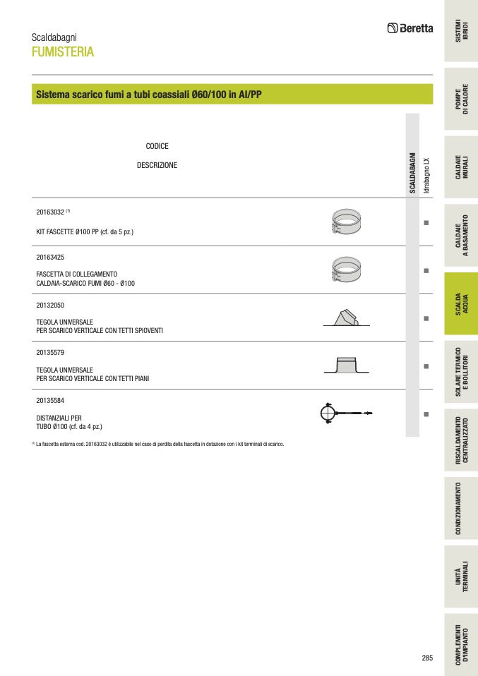 La fascetta esterna cod. 20163032 è utilizzabile nel caso di perdita della fascetta in dotazione con i kit terminali di scarico.