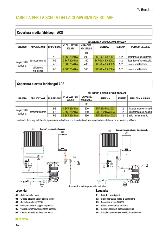 Il contenuto delle seguenti tabelle è puramente indicativo e non è sostitutivo di una progettazione effettuata da un tecnico qualificato