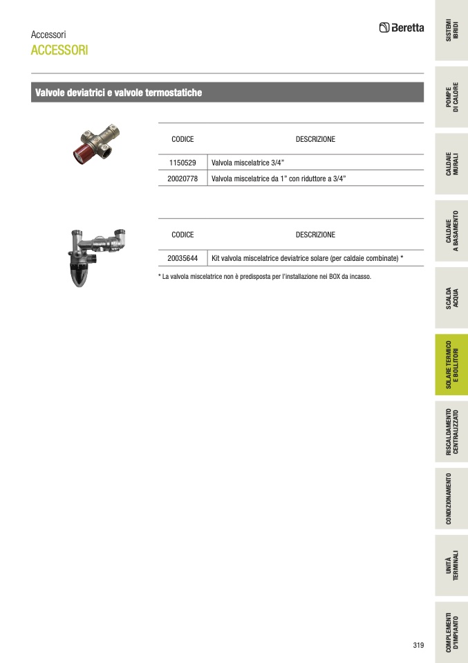 * La valvola miscelatrice non è predisposta per l’installazione nei BOX da incasso.
