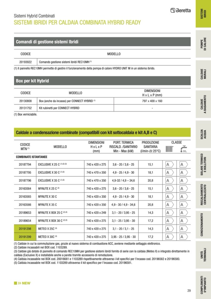 (3) Caldaie già dotate di pannello di comando REC10MH per gestione sistemi ibridi fornito di serie con la caldaia (Meteo X) o integrato direttamente in