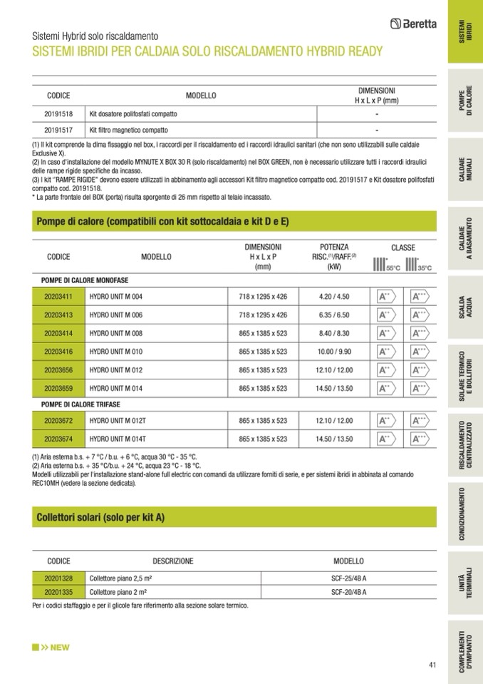 Per i codici staffaggio e per il glicole fare riferimento alla sezione solare termico.
