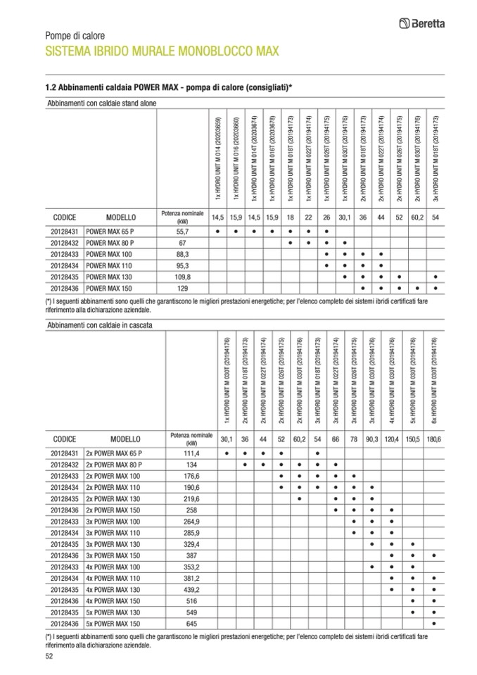 abbinamenti sono quelli che garantiscono le migliori prestazioni energetiche; per l’elenco completo dei sistemi ibridi certificati fare