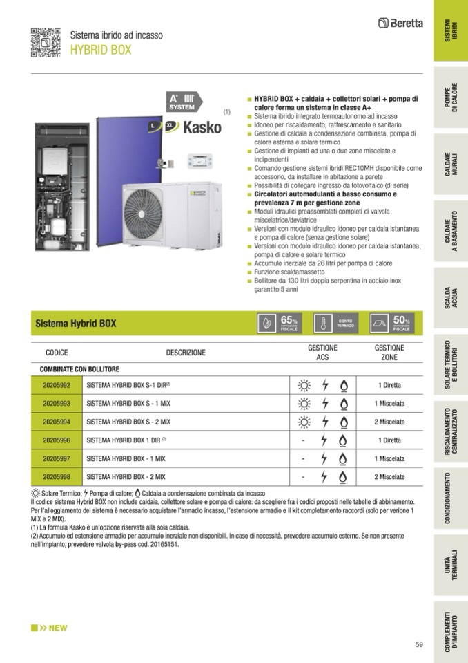 Il codice sistema Hybrid BOX non include caldaia, collettore solare e pompa di calore: da scegliere fra i codici proposti nelle tabelle di abbinamento.