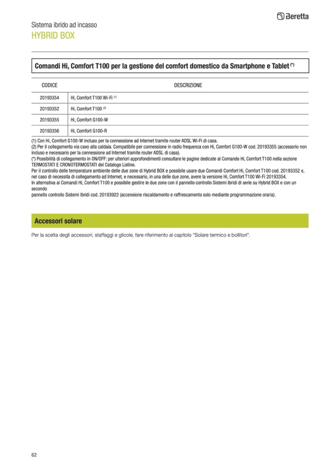 nel caso di necessita di collegamento ad Internet, e necessario, in una delle due zone, avere la versione Hi, Comfort T100 Wi-Fi 20193354.
