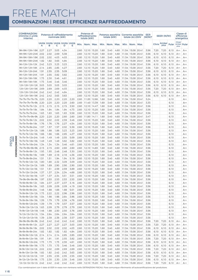 (*)Le combinazioni con il dato di EER in rosso non rientrano nelle DETRAZIONI FISCALI. Fare comunque riferimento all’autocertificazione del produttore.