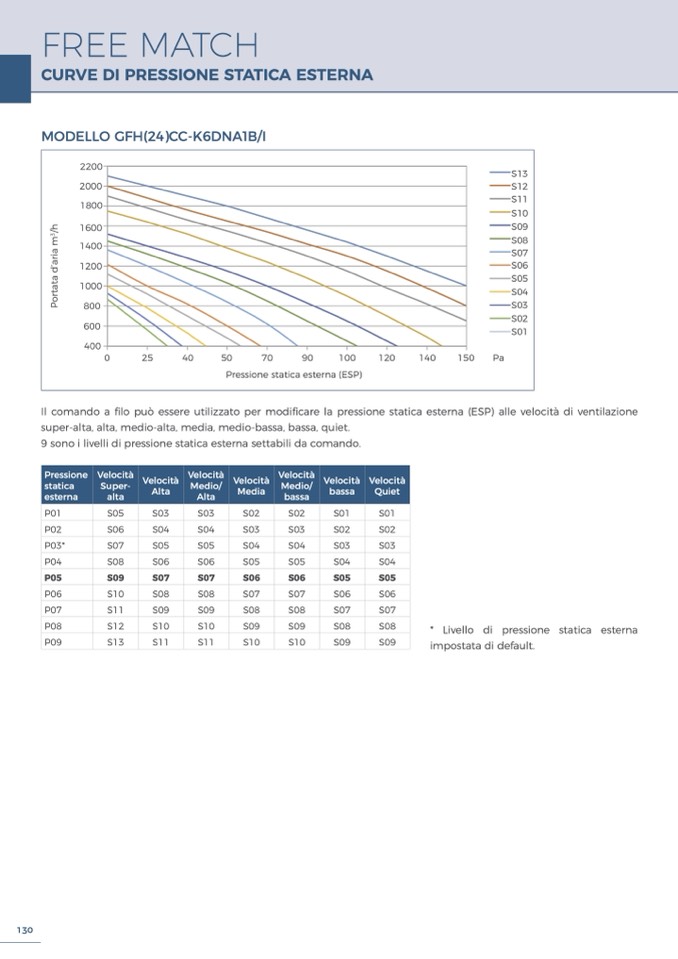 9 sono i livelli di pressione statica esterna settabili da comando.
