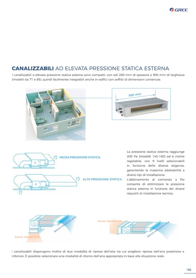I canalizzabili a elevata pressione statica esterna sono compatti, con soli 260 mm di spessore e 900 mm di larghezza