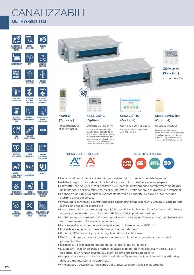 L’abbinamento al comando a filo consente di ottimizzare la pressione statica esterna in funzione