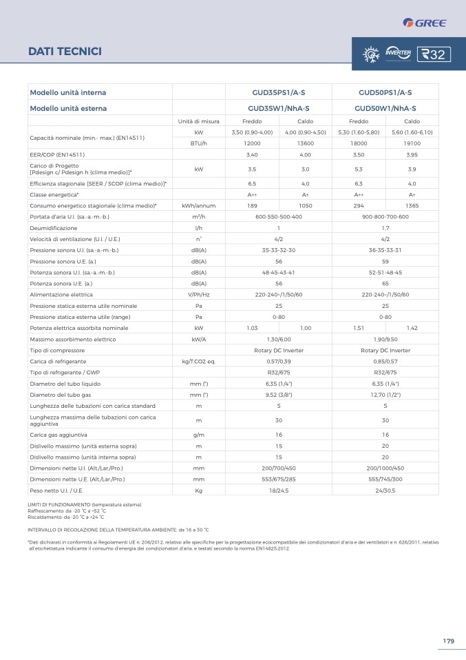 *Dati dichiarati in conformità ai Regolamenti UE n. 206/2012, relativo alle specifiche per la progettazione ecocompatibile dei condizionatori d’aria e dei ventilatori e n. 626/2011, relativo
