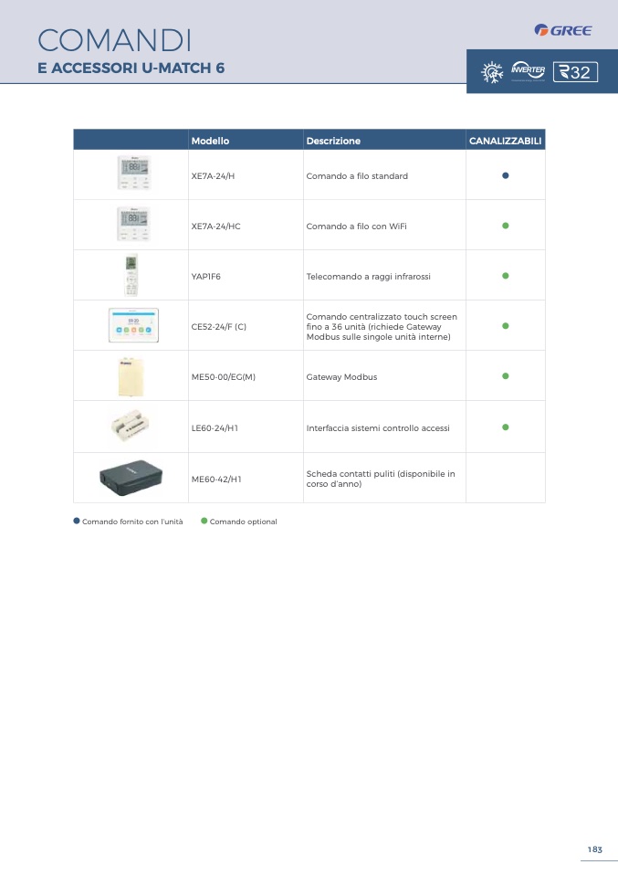 Comando fornito con l’unità
