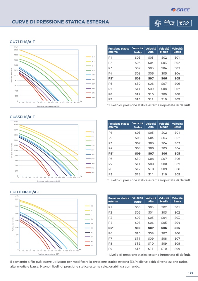 alta, media e bassa. 9 sono i livelli di pressione statica esterna selezionabili da comando.