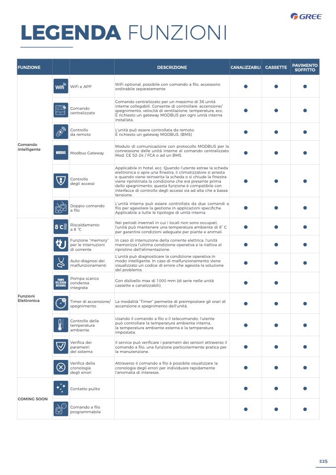 spegnimento, velocità di ventilazione, temperatura, ecc.