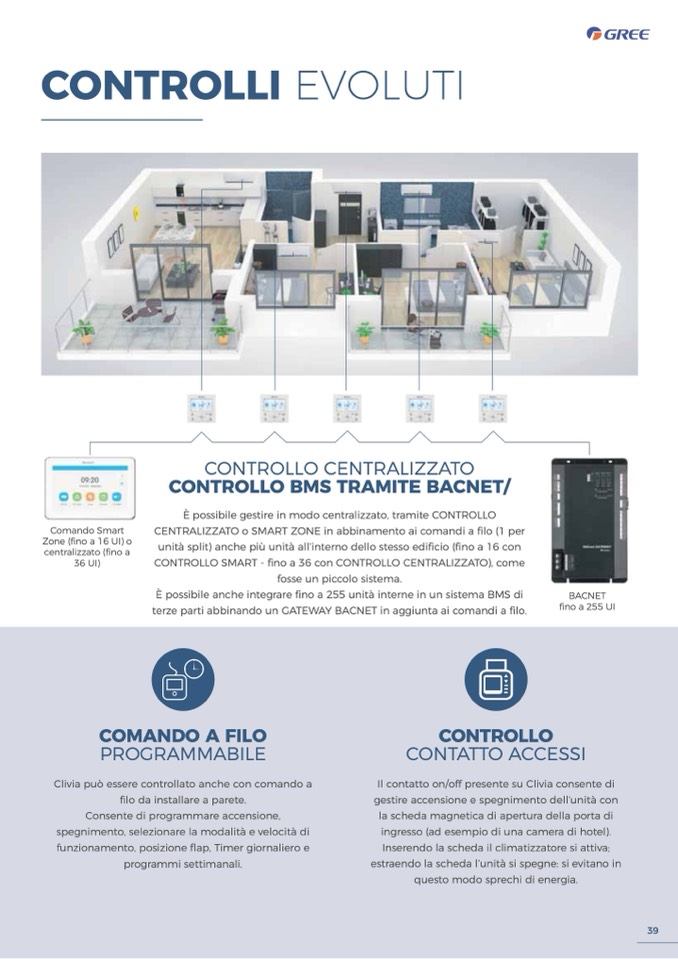 terze parti abbinando un GATEWAY BACNET in aggiunta ai comandi a filo.