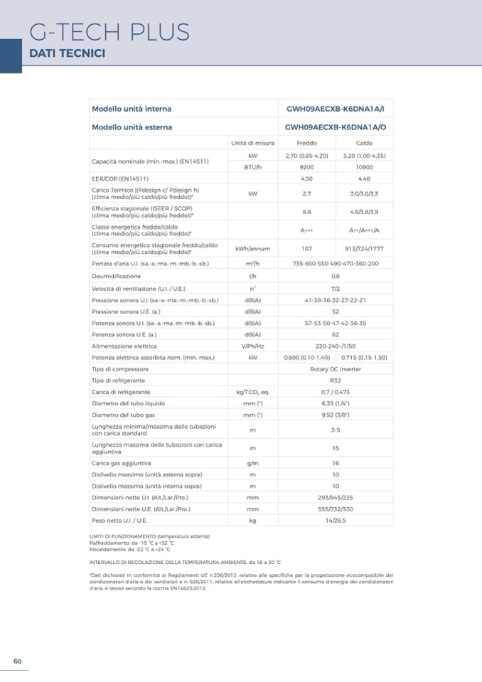 LIMITI DI FUNZIONAMENTO (temperatura esterna)
