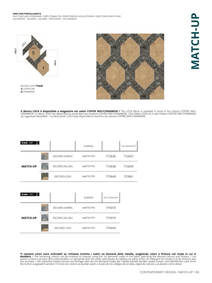 CINNAMON. Le décor LOCK est disponible en stock dans les couleurs COFFEE MIX+CINNAMON. / Der Dekor LOCK ist in den Farben COFFEE MIX+CINNAMO