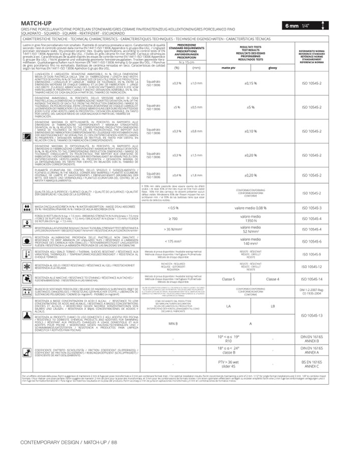 CARATTERISTICHE TECNICHE - TECHNICAL CHARACTERISTICS - CARACTERISTIQUES TECHNIQUES - TECHNISCHE EIGENSCHAFTEN - CARACTERÍSTICAS TÉCNICAS