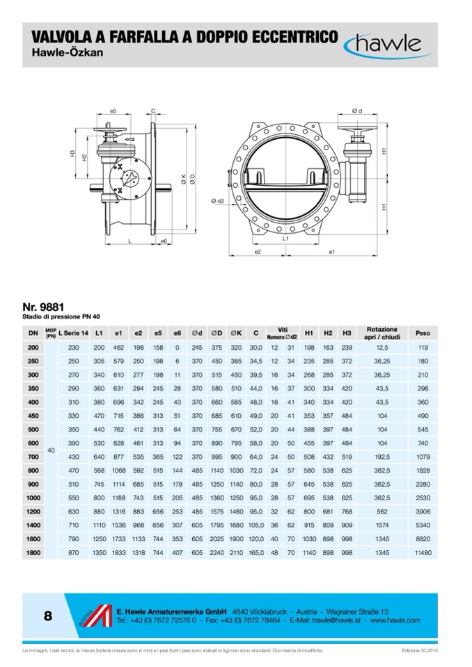 Le immagini, i dati tecnici, le misure (tutte le misure sono in mm) e i pesi (tutti i pesi sono indicati in kg) non sono vincolanti. Con riserva di modi