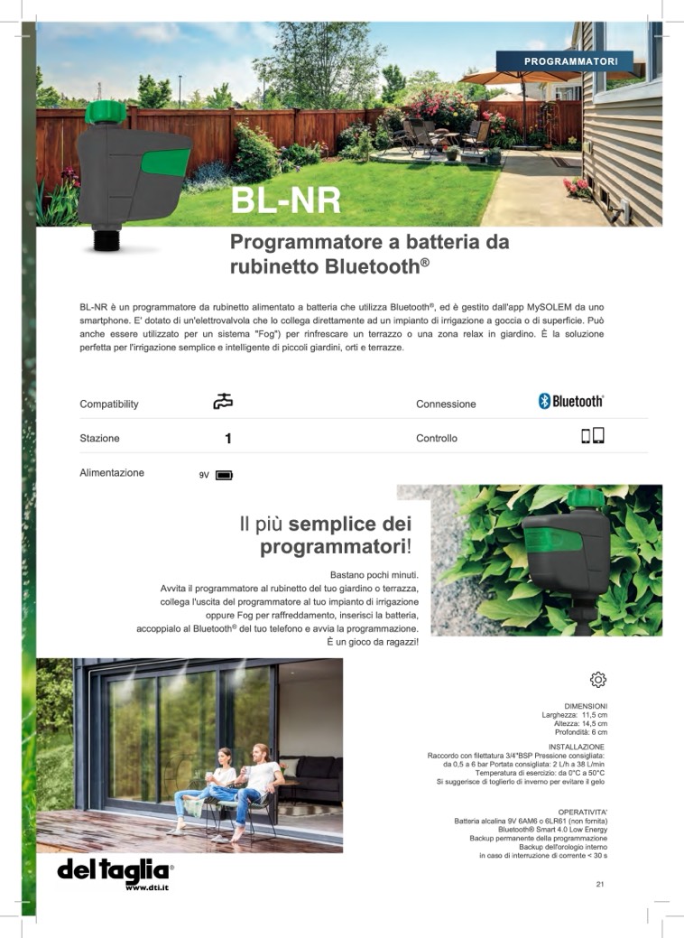 smartphone. E' dotato di un'elettrovalvola che lo collega direttamente ad un impianto di irrigazione a goccia o di superficie. Può