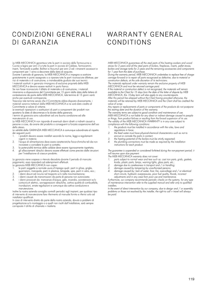 The validity of the MEB MECCANICA WARRANTY is in any case subject to