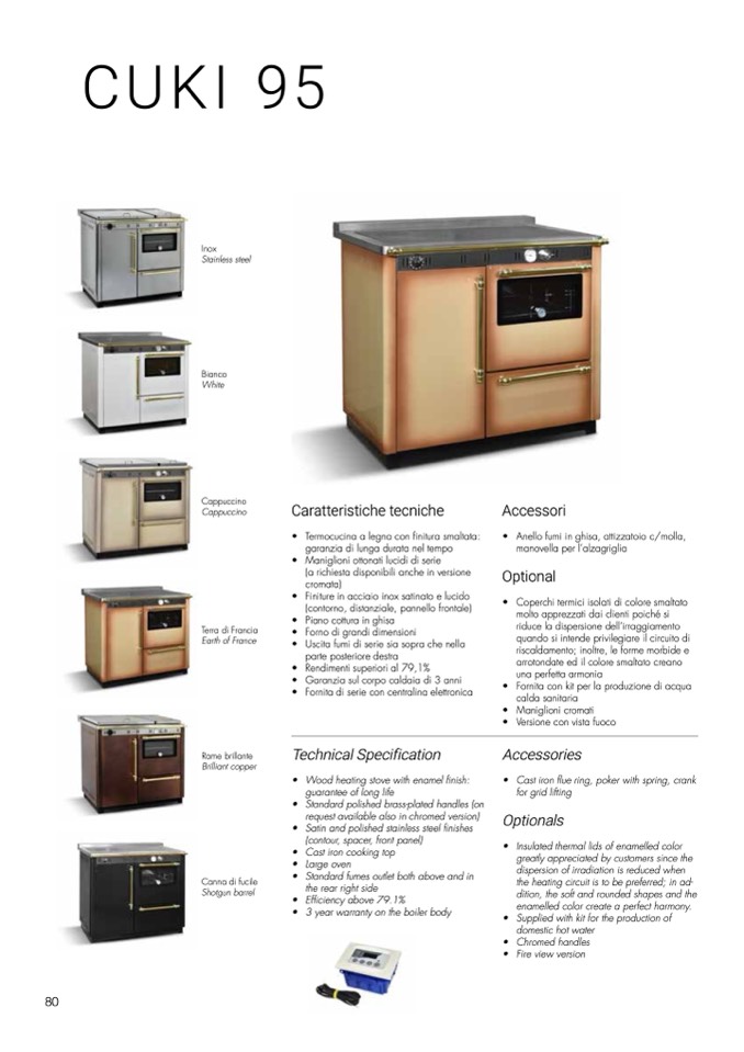 • Anello fumi in ghisa, attizzatoio c/molla,