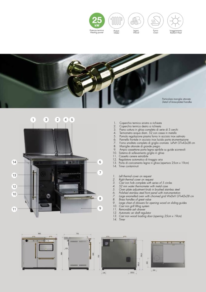 13. Cast iron wood loading door (opening 25cm x 19cm)
