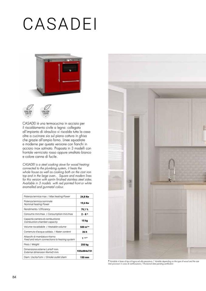 CASADEI is a steel cooking stove for wood heating: