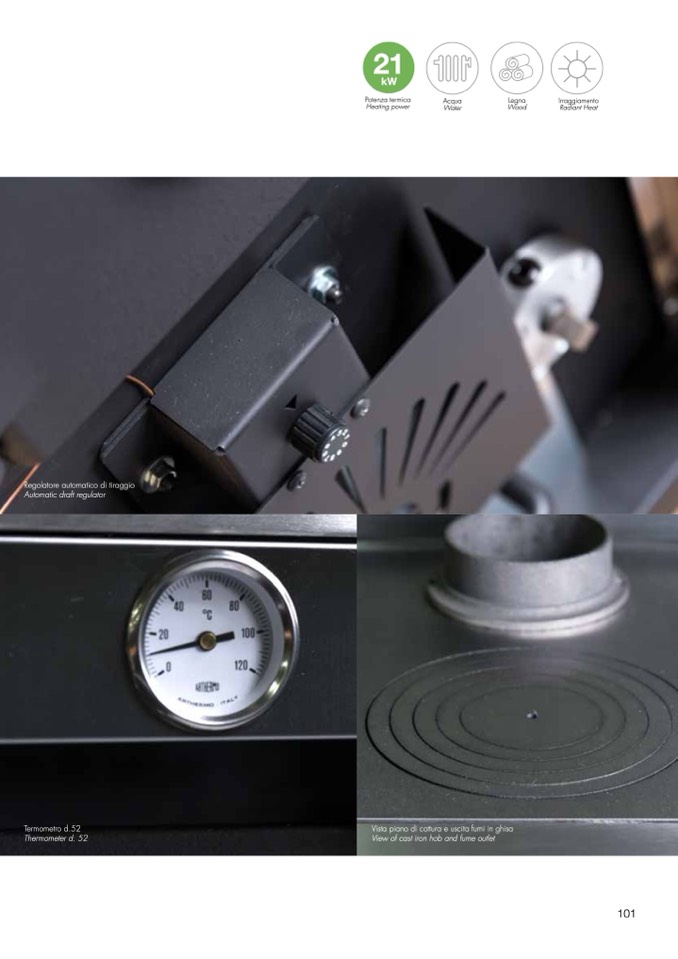 Vista piano di cottura e uscita fumi in ghisa