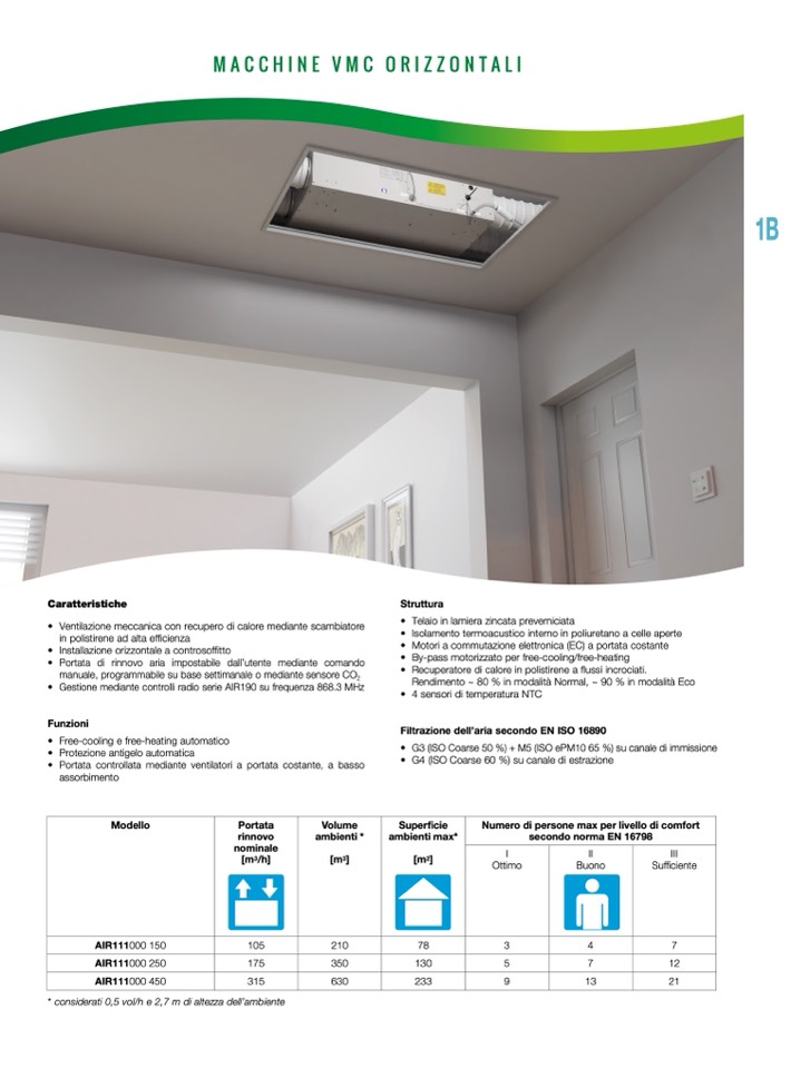 • Portata di rinnovo aria impostabile dall’utente mediante comando