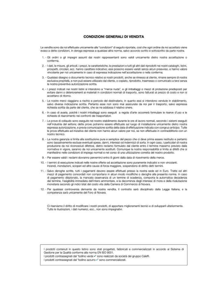 I prodotti contenuti in questo listino sono stati progettati, fabbricati e commercializzati in accordo al Sistema di