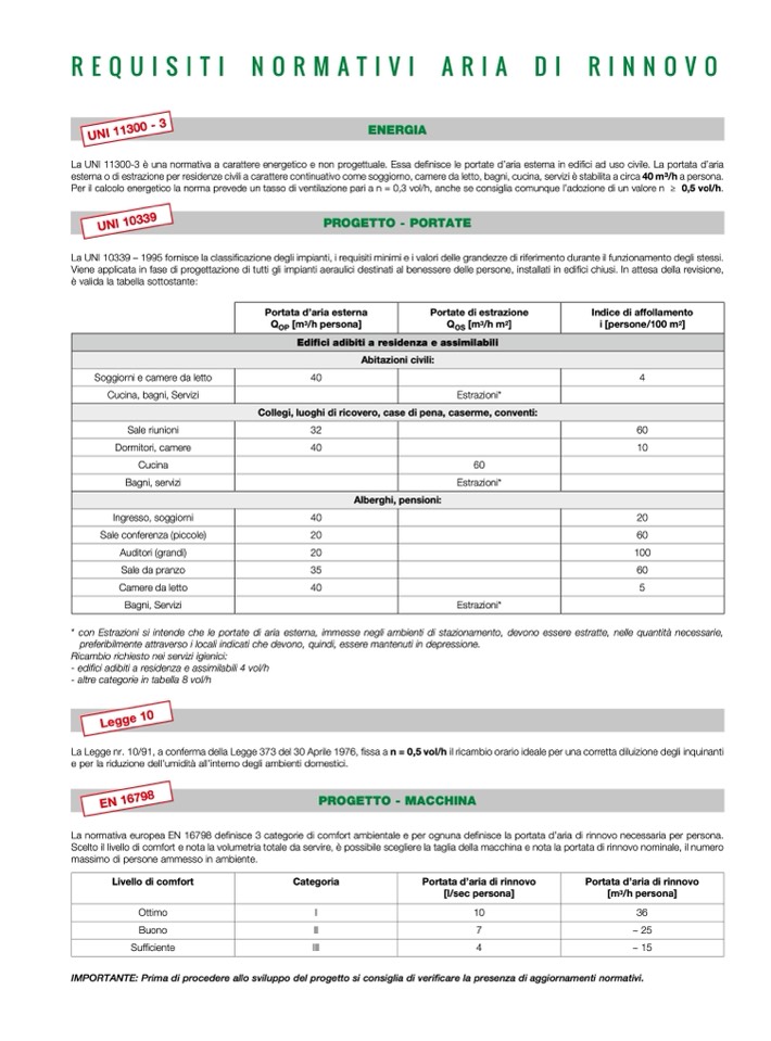 La UNI 11300-3 è una normativa a carattere energetico e non progettuale. Essa definisce le portate d’aria esterna in edifici ad uso civile. La portata d’aria