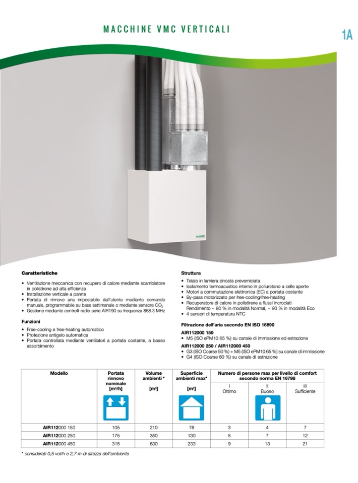 • Portata di rinnovo aria impostabile dall’utente mediante comando