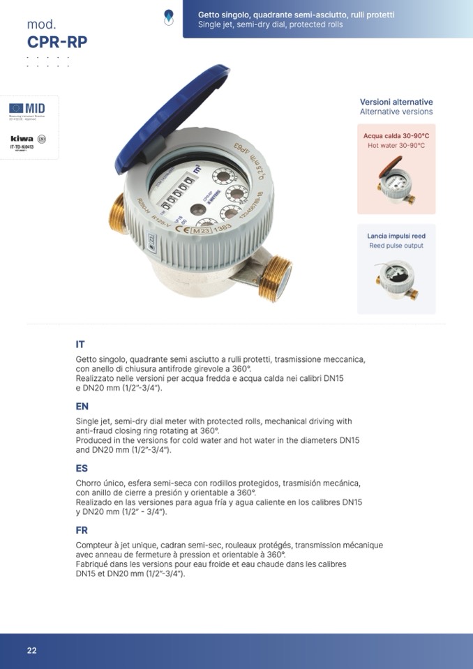 Fabriqué dans les versions pour eau froide et eau chaude dans les calibres