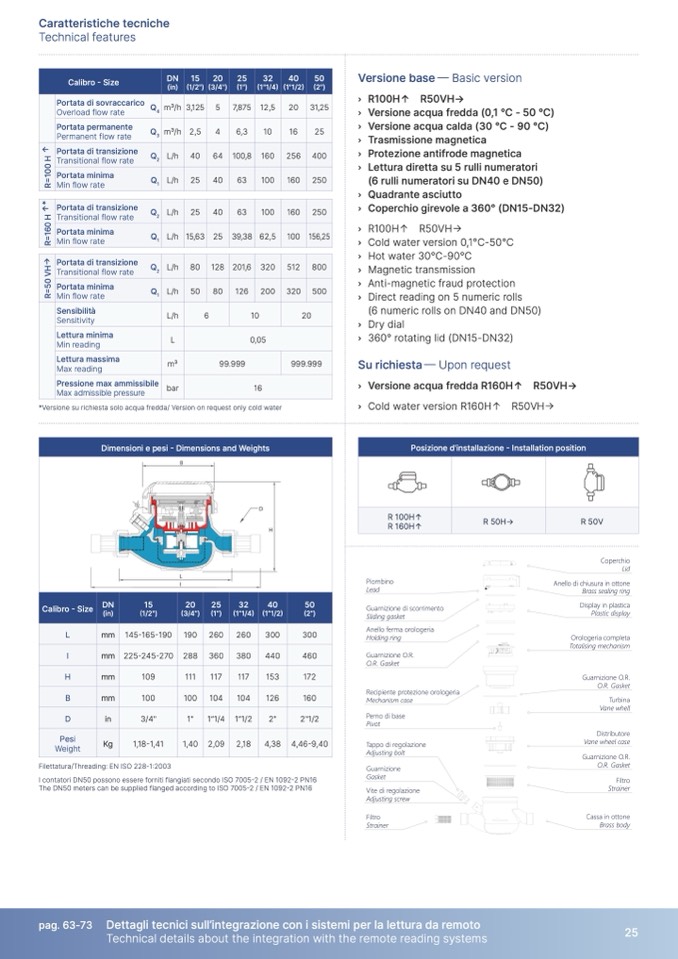 I contatori DN50 possono essere forniti flangiati secondo ISO 7005-2 / EN 1092-2 PN16