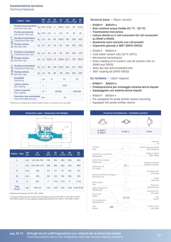 I contatori DN50 possono essere forniti flangiati secondo ISO 7005-2 / EN 1092-2 PN16