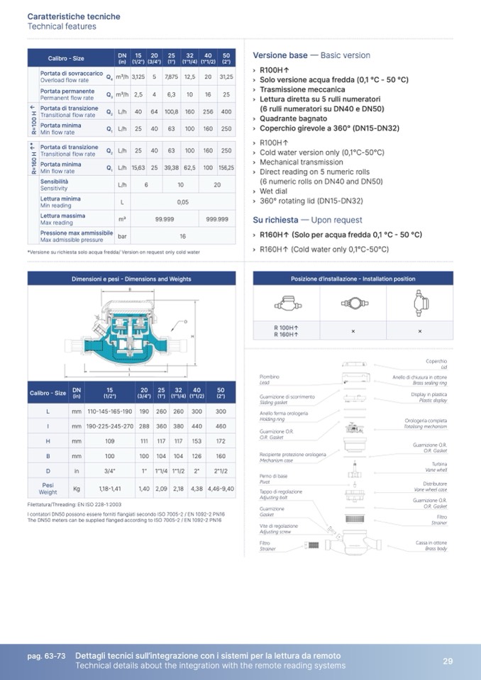 I contatori DN50 possono essere forniti flangiati secondo ISO 7005-2 / EN 1092-2 PN16