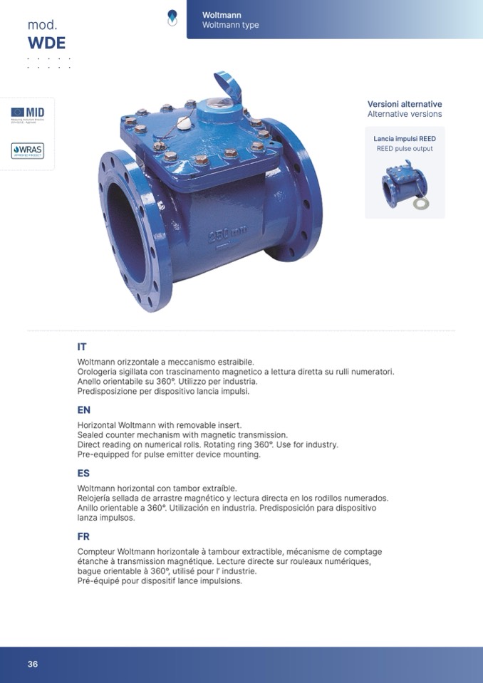 Woltmann orizzontale a meccanismo estraibile.