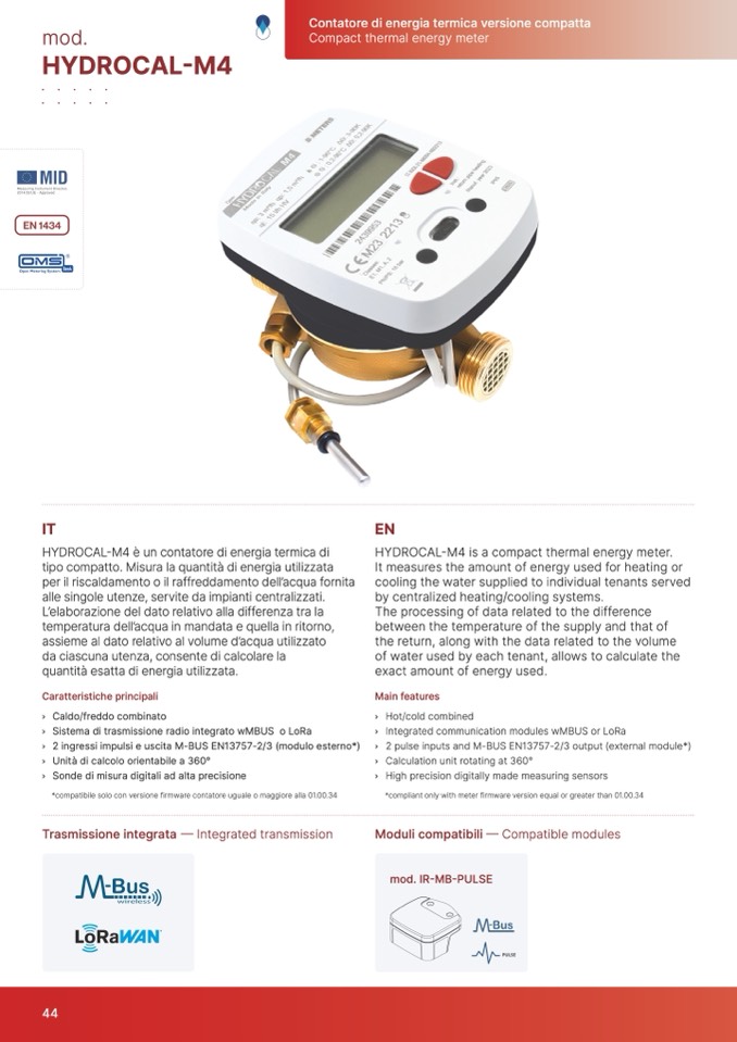 › 2 ingressi impulsi e uscita M-BUS EN13757-2/3 (modulo esterno*)