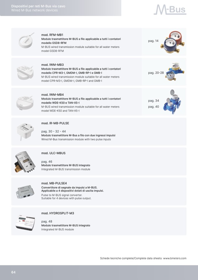 Schede tecniche complete/Complete data sheets: www.bmeters.com