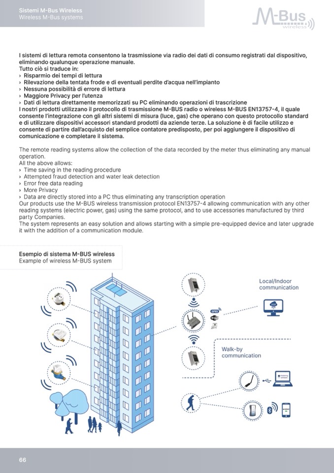 I nostri prodotti utilizzano il protocollo di trasmissione M-BUS radio o wireless M-BUS EN13757-4, il quale