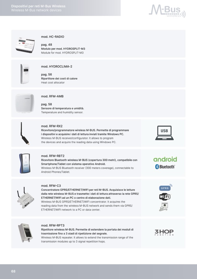 Wireless M-BUS repeater. It allows to extend the transmission range of the