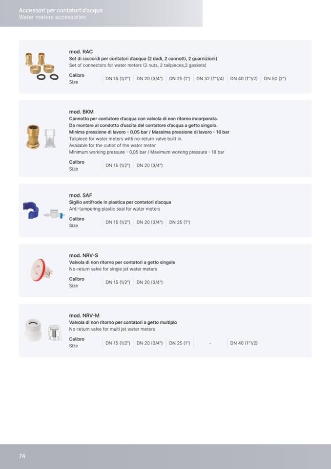 Da montare al condotto d’uscita del contatore d’acqua a getto singolo.