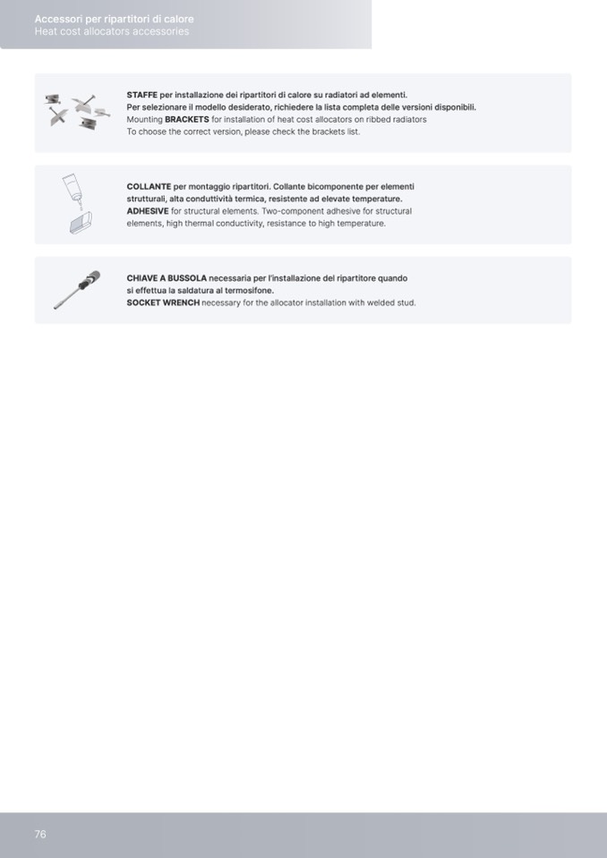 Mounting BRACKETS for installation of heat cost allocators on ribbed radiators